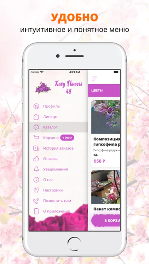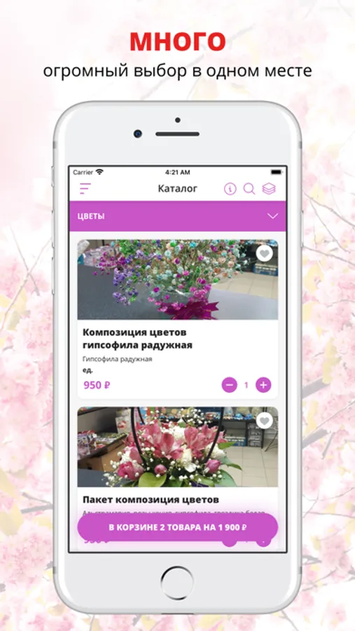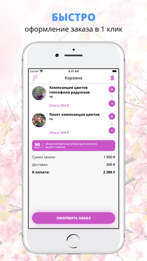 Скачивайте наше приложение, оформляйте заказ и дарите цветы любимым!