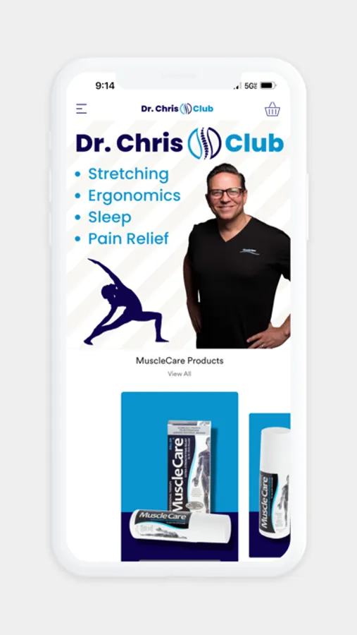 The Dr. Chris Club is his official app. Here, you will find tips from Dr. Chris himself on stretching, ergonomics, healthy sleep practices, and other wellness topics. You can also purchase his pain relief products, MuscleCare, within the app for your convenience.