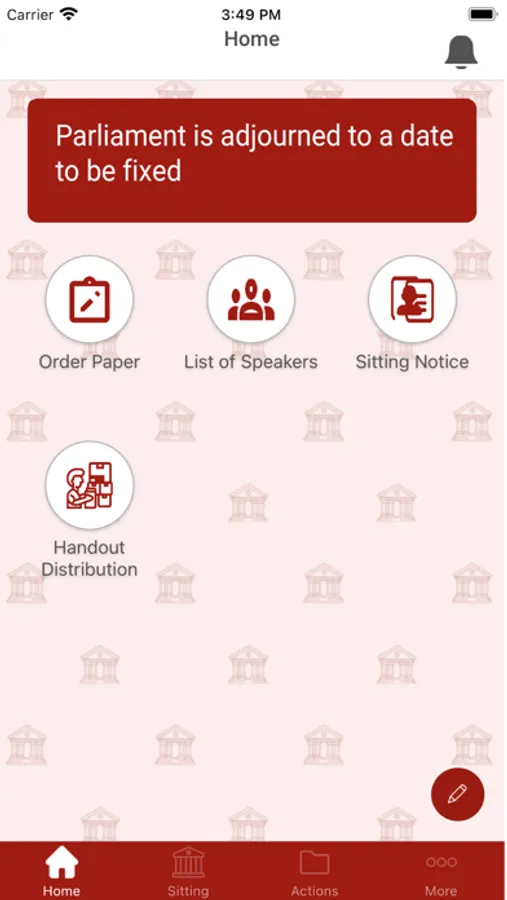 The mobile app contains relevant materials and documents for the parliament sitting. Members can refer to the pre-sitting documents from the app at their own convenience. The App will also receive notification pertaining to the sitting
