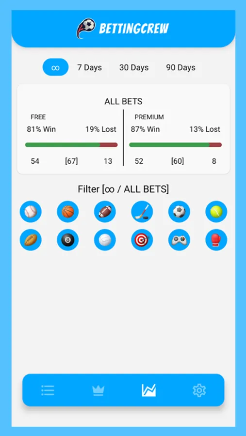 Our goal is to achieve a positive betting success rate and build a large sports betting community.