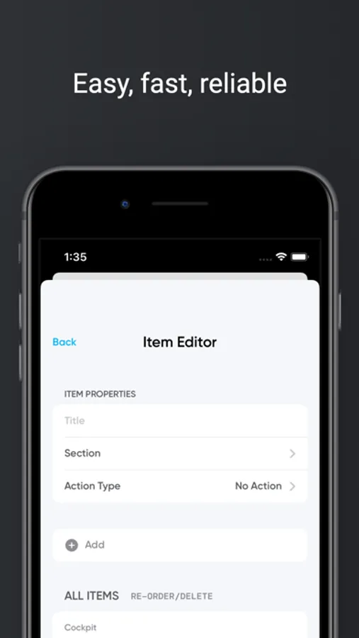 - Sections! You can divide the checklist by flight phases or you can just create a single checklist for each phase.