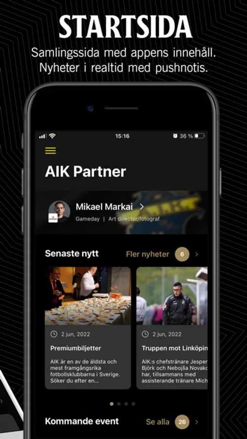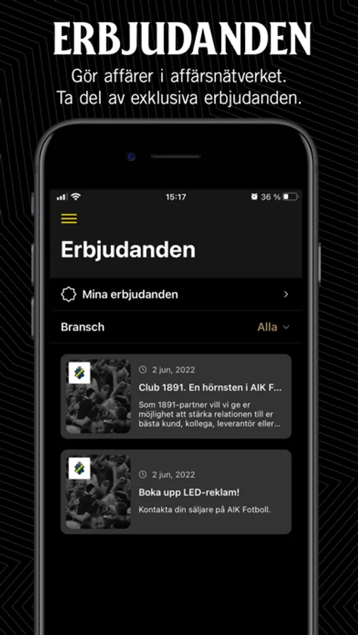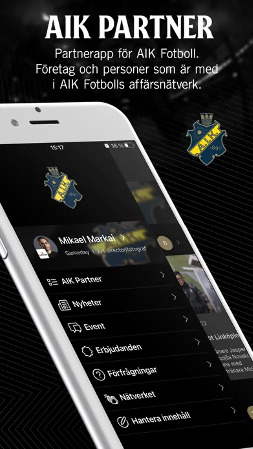AIK Fotbolls partnerapp för dig som är partner till AIK Fotboll. Här får du information om aktiviteter, events, erbjudanden och förhandsinfo. Samt tillgång till företag och personer som är med i AIK Fotbolls Affärsnätverk.