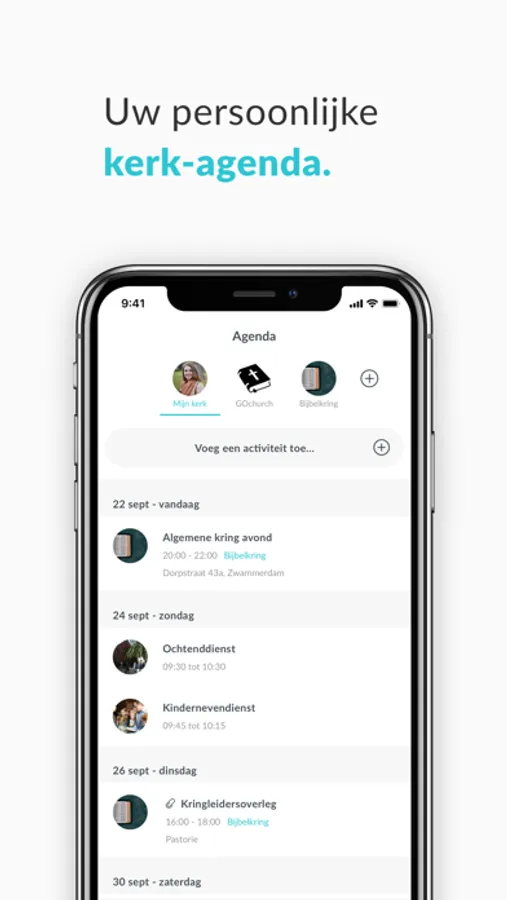 View the calendar for your entire community, but also for specific groups. Thanks to the smart group structure, each user has his own unique church calendar. Then link it to your own personal calendar and don't miss a thing!