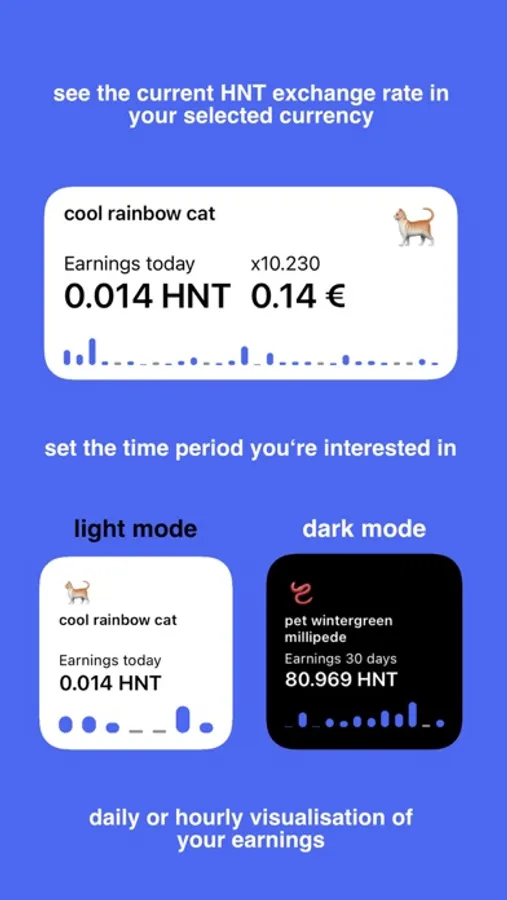 • See your HNT earnings converted in your preferred currency (€, $, C$, £, CHF, ¥, ₽, zł)