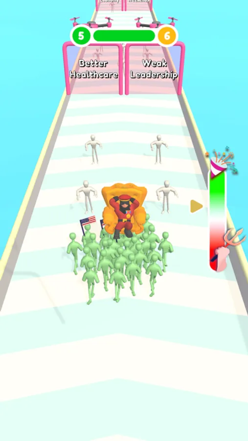 Start by gathering people to your cause. Move your "Presidente" left and right to pick up followers along the road.