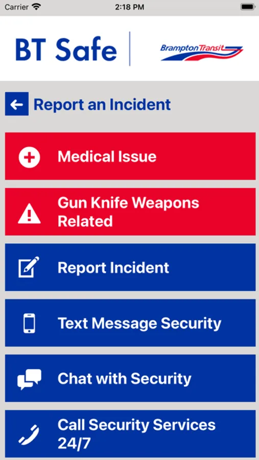 BT Safe is the official safety app of Brampton Transit. It is the only app that integrates with City of Brampton Security Services safety and Brampton Transit. The app will allow you to submit safety reports, speak live with Security Service and provide instant access to safety and transit resources.