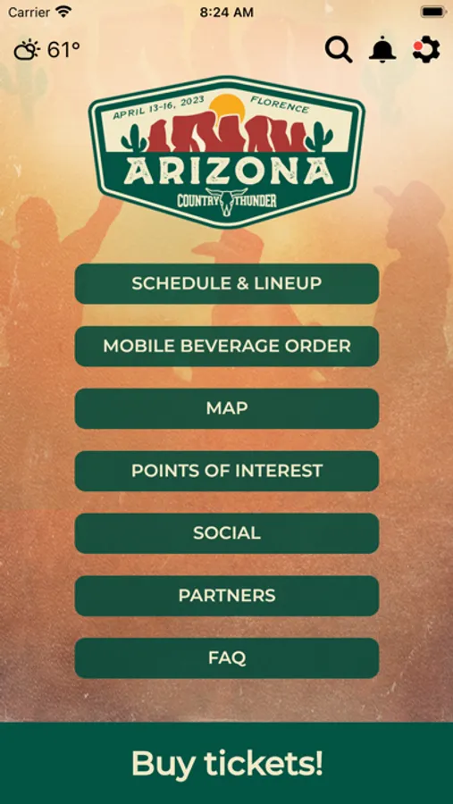 The Country Thunder Arizona official app is your source for all the latest festival information. See who is playing when on all of our stages and in Electric Thunder, find food options, and information on all our awesome vendors! Maps, FAQ's, and more are also included!