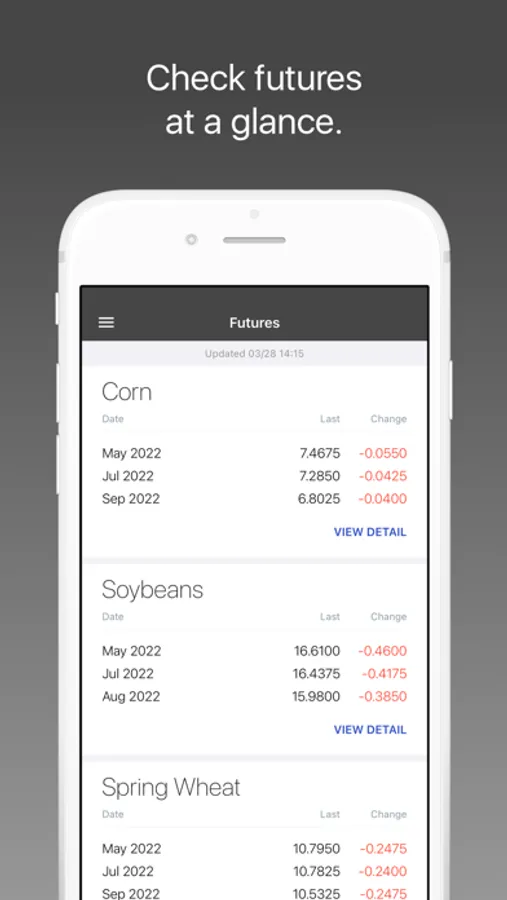 Futures: See Grains, Feed, Livestock, and Ethanol futures listed in order of your preference