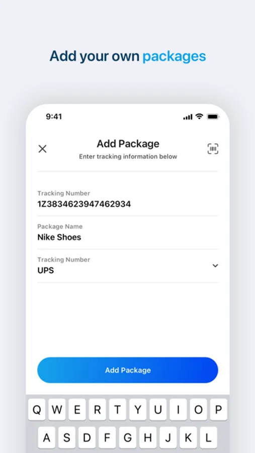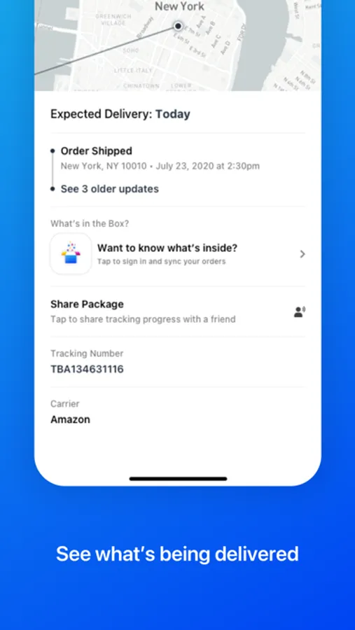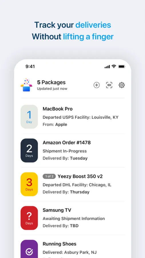 • Add your own tracking numbers to manually track orders not linked to your email.