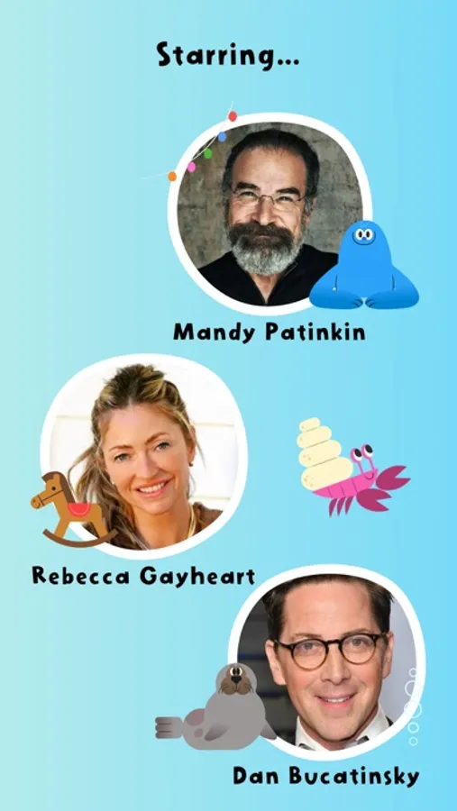 Brought to life with the narration of an Emmy Award-winning cast of comedians and actors, including Mandy Patinkin, Rebecca Gayheart and Dan Bucatinsky, these rhyming stories aim to transport and thoroughly entertain. With characters like a lactose intolerant seal, and with elements like spinning socks and farting aliens, we’ve sweat every detail to make your kiddo laugh out loud. Tap around and explore - we’ve hidden surprises everywhere!