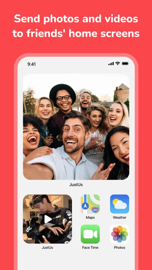 After taking a photo, you can send it to all your friends‘ home screens and also all your friends real lives are shown in your homescreen, keeping your friends all day with you.