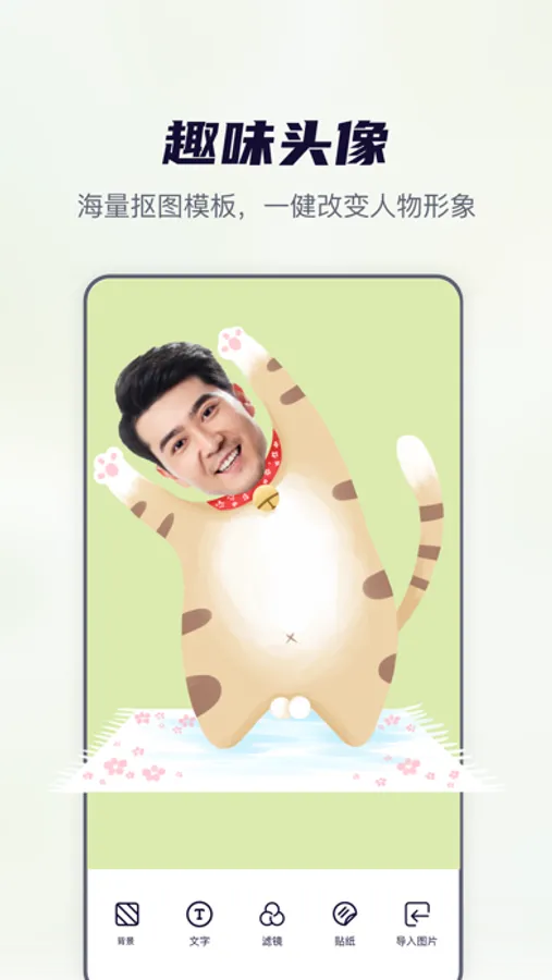 头像抠图:智能识别人体头像,精准扣出图像中的人体头像,结合我们提供的精美素材,实现趣味无穷的头像抠图组合效果;