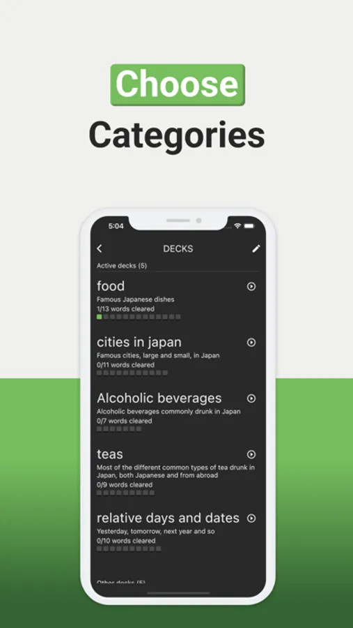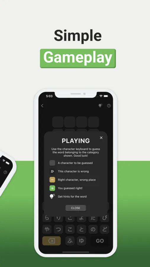Master Japanese vocabulary and improve your memory with our fun, casual puzzle game. Practice writing Hiragana and Katakana with our custom keyboard and hit/miss color scheme, while tracking your progress with daily usage and progress monitoring. With over 100 words and 10 categories to choose from, you can improve your Japanese proficiency with vocabulary building, drills, and writing practice. Get hints and look up words using Jisho, the popular Japanese dictionary, to further enhance your study experience. Perfect for study on the go, our offline play and daily challenges make it easy to keep learning. Start your Japanese training today with our study aid and game statistics to track your progress.