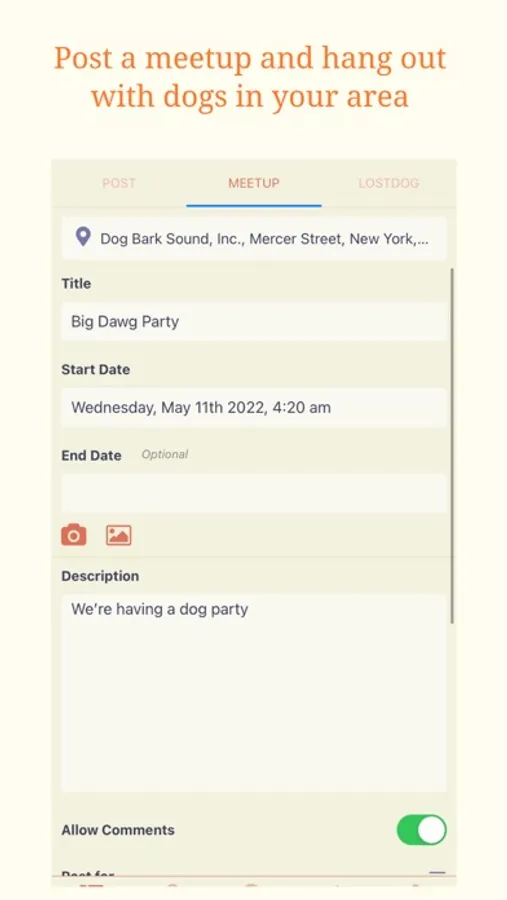 * Post your location so dog friends can come say hi