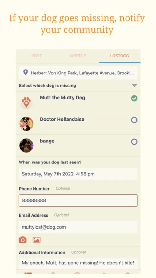 * Post updates and photos of your dog