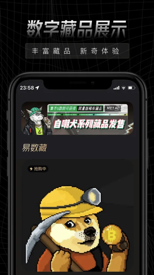易数藏基于区块链技术的数字藏品发行、推广及交易平台。秉承科技向善的信念,致力于传统和现代文化艺术的推广,满足用户对数字藏品的收藏、欣赏与分享的需求。