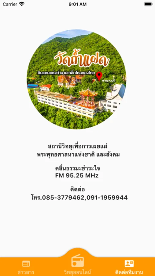 สถานีวิทยุคลื่นธรรมะชำระใจ FM 95.25 MHz แต่ก่อนตั้งอยู่ วัดมโนธรรมาราม (วัดนางโน) จ.กาญจนบุรี แต่ตอนนี้ได้ย้ายมาตั้งที่ วัดถ้ำแฝด ตำบลเขาน้อย อำเภอท่าม่วง จังหวัดกาญจนบุรี