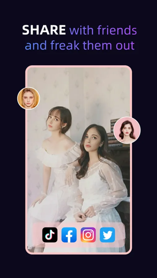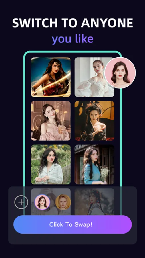 Discover your unique style by swapping your face with someone else's in both pictures and videos. With FaceFancy, you're not limited to just one form of face-swapping—have fun exploring different characters-celebrites,a pop star, a new person in popular movies, dress in wedding or princess dress, or act in a funny meme.