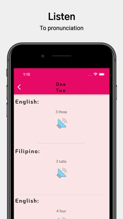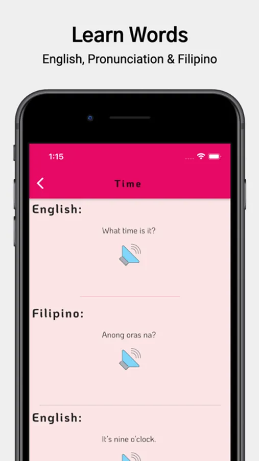 • In every lesson, you can listen to the Filipino word pronunciation as well as see Filipino word in english language.
