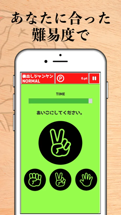 ジャンケンのグー、チョキ、パー、いずれかが表示されます。