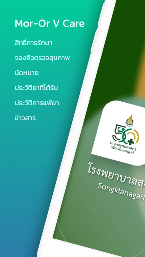 Mor-Or V Care แอพพลิเคชั่นสำหรับผู้ที่เข้ารับการบริการของโรงพยาบาลสงขลานครินทร์ ตัวช่วยที่จะทำให้คุณทราบข้อมูลทั่วไป ประวัติการแพ้ยา ข้อมูลการนัดหมายในแต่ละครั้ง สิทธิการรักษา คิวในการรับบริการ รวมไปถึงการชำระเงินผ่านทางโทรศัพท์มือถือและอุปกรณ์พกพาต่างๆ ซึ่งจะทำให้ผู้รับบริการได้รับความสะดวกสบาย ไม่ว่าจะอยู่จุดใด ก็สามารถรับรู้และติดตามข้อมูลสุขภาพของตนเองได้ตลอดเวลา