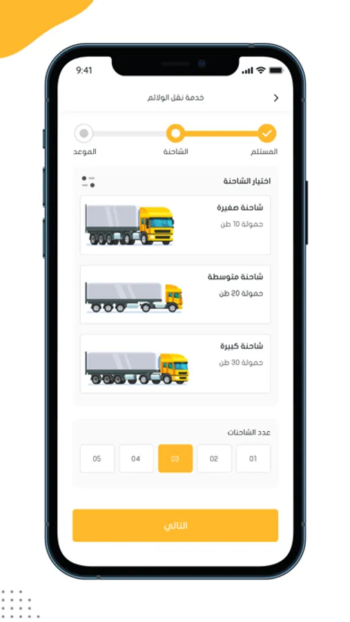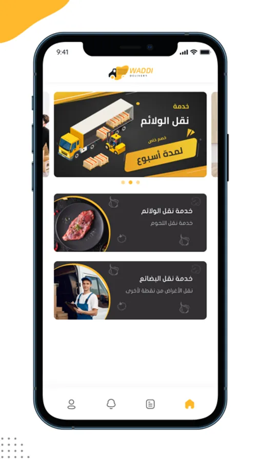 هو تطبيق مختص بالشاحنات لنقل اللحوم والولائم ونقل عفش البيوت والأثاث من وإلى المناطق المحددة.