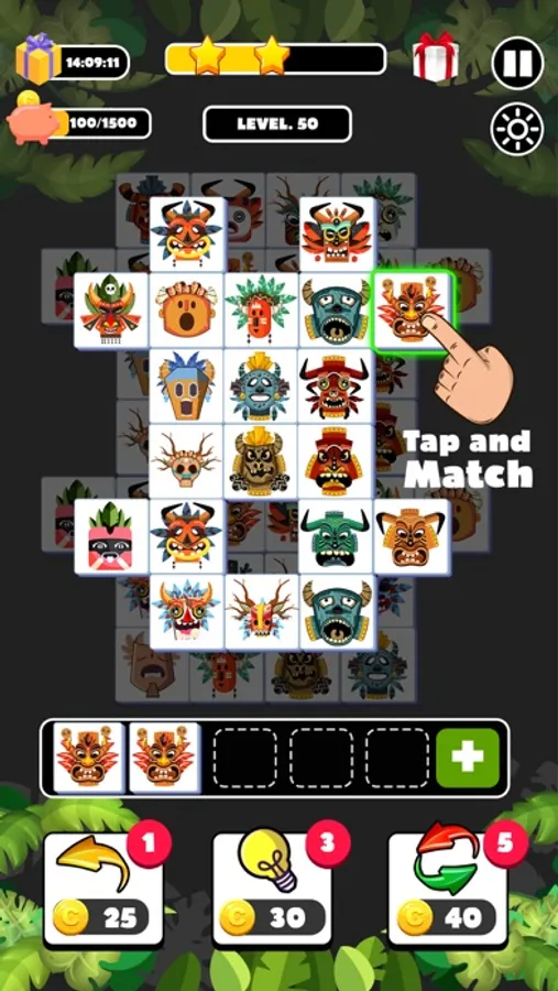 Collect 3 identical tiles to match them and remove them from the puzzle.