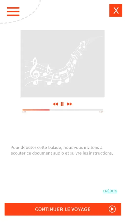 Sélectionner la balade que vous souhaitez faire. Grâce à l’outil de géolocalisation, rejoignez l’une des étapes du parcours. Il est possible de commencer les balades de n’importe quelle étape mais nous vous conseillons vivement de commencer par la première pour une meilleure expérience.