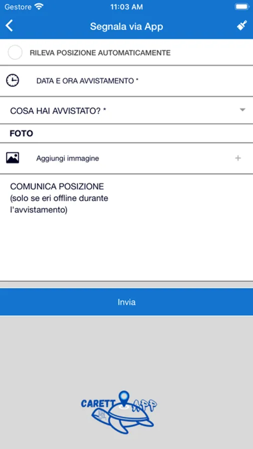 CarettApp è una App che serve a segnalare tartarughe e altre speci marine che si avvistano durante la navigazione in mare. Il progetto è stato realizzato dal'l Istituto Zooprofilattico Sperimentale della Sicilia in collaborazione con Migastone.