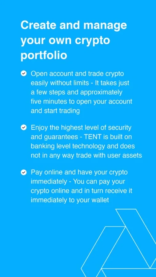 Introducing TENT, a trusted cryptocurrency app that makes buying, selling, and trading crypto easy and secure. With TENT, you can confidently navigate cryptocurrencies with the highest level of security and transparency.