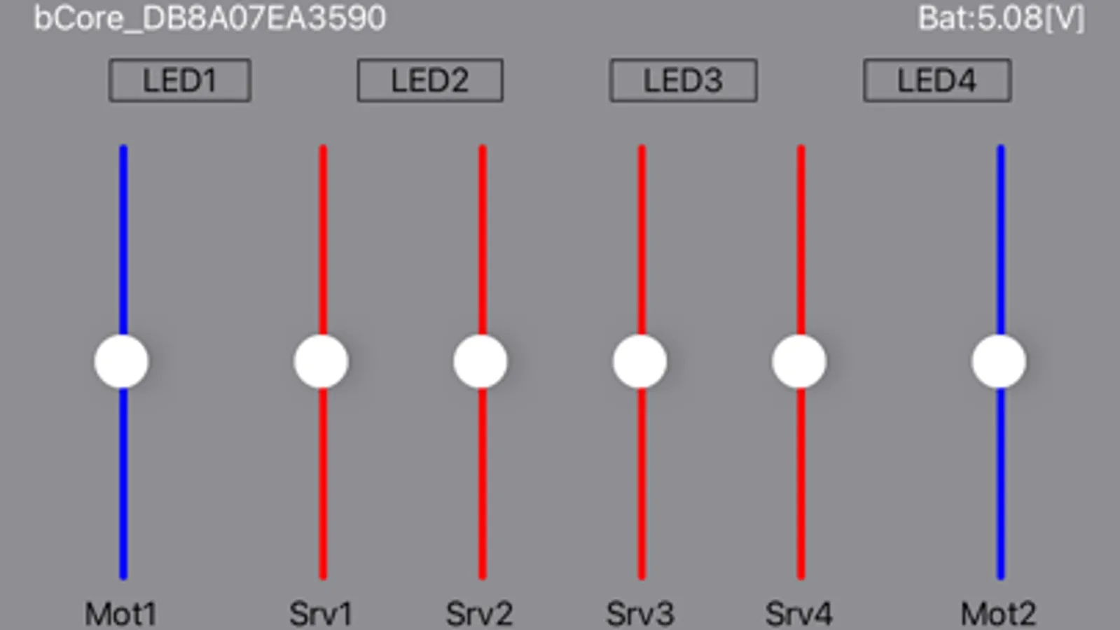 BLE remote control iOS application for ultra-small BLE peripheral device "bCore"that can control servos, motors and LEDs.