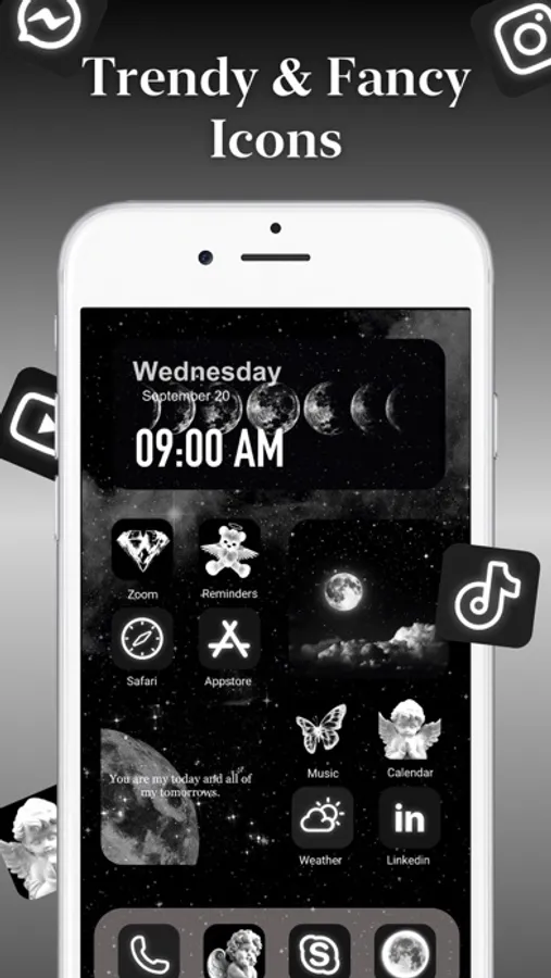 Fancy themes for iPhone: cool widgets, customize app icon, aesthetic wallpapers! Endless personalized options gives you a new way to express yourself, and make your iPhone outstanding! A cool screen saver app,super easy to setup!