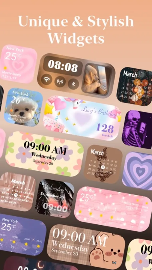 Select widgets you like,Time,Date,Calendar,photo is available now, and more fancy widgets waiting for you to discover!