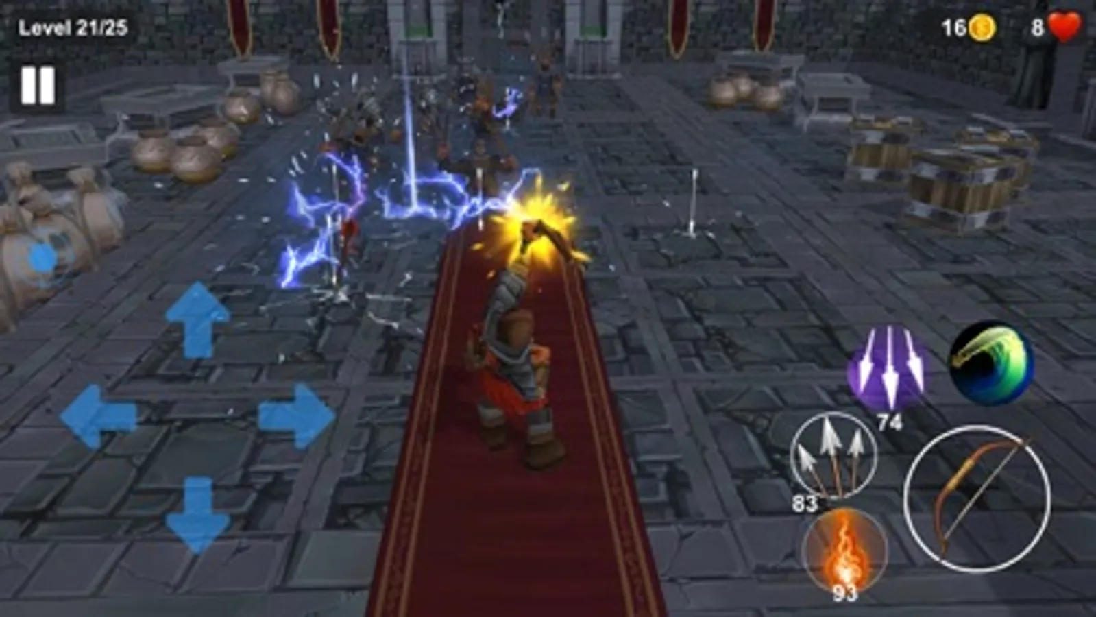 - Shoot thunder arrow, can destroy enemies in radius 15-20m