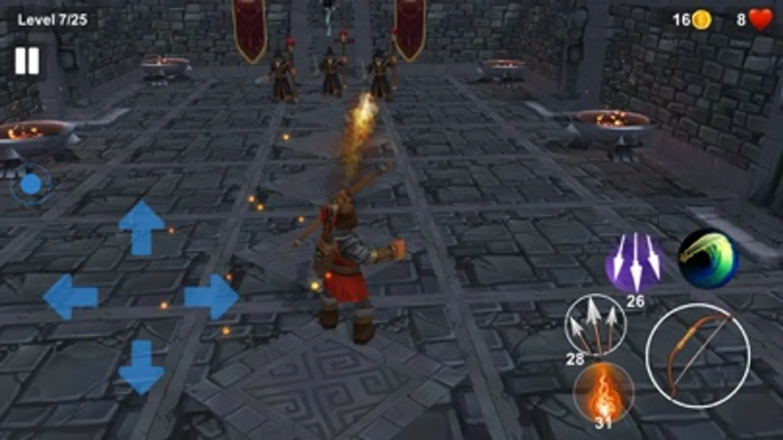 - Shoot a fire arrow forward to burn enemies