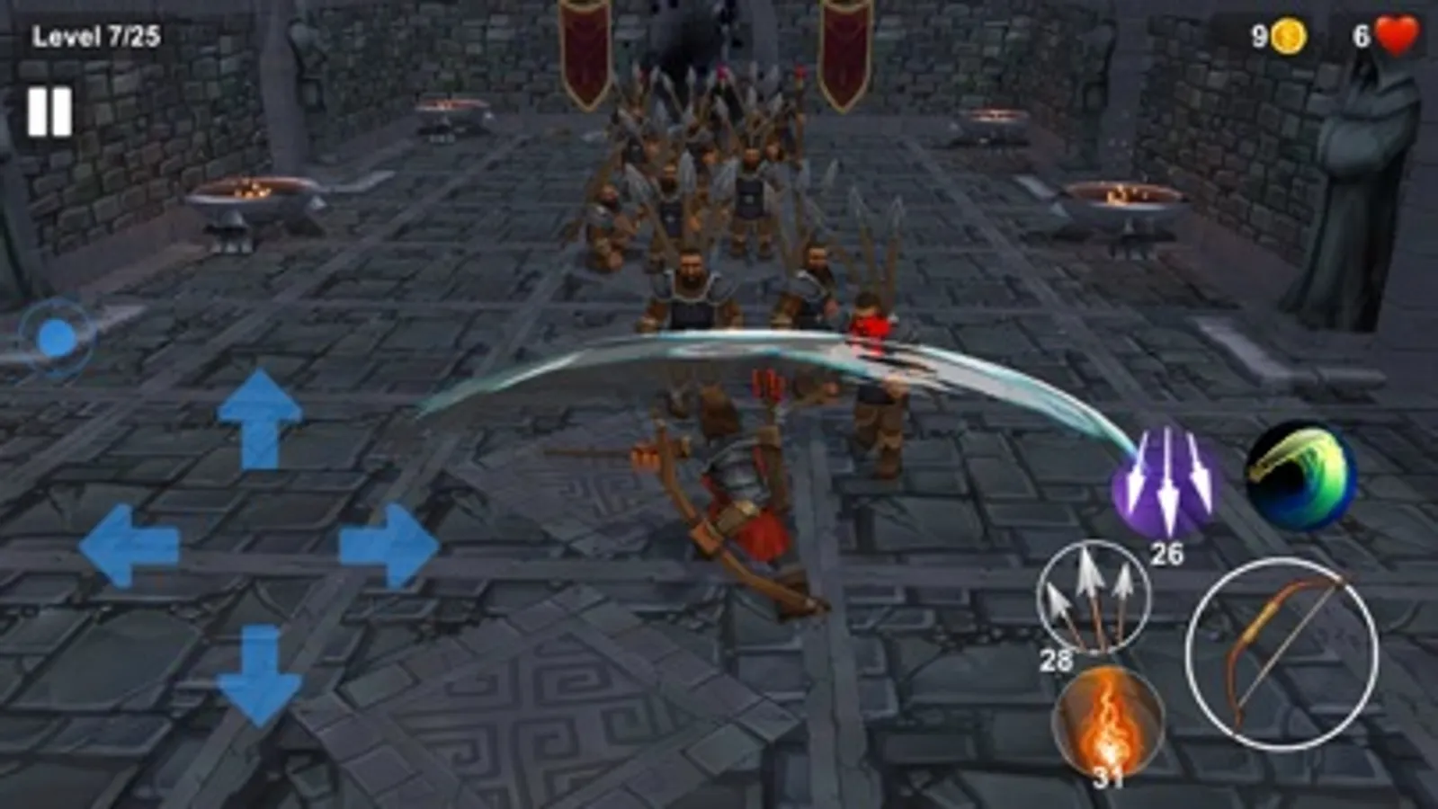 Besides that we can swing the arrow like a sword to fight enemies nearby.
