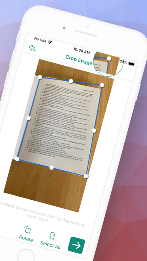 Auto-Crop and Enhance: The app automatically detects document boundaries and applies smart cropping to remove unnecessary background elements. It also enhances scan quality by adjusting brightness, contrast, and color.