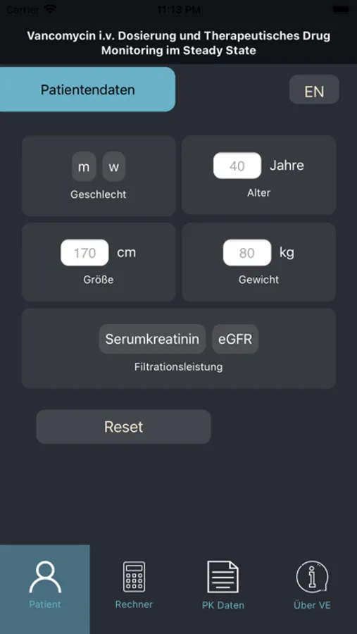 VancoEasy wurde nur für den persönlichen Gebrauch erstellt. Die Verwendung eines von VancoEasy erzeugten Ergebnisses erfolgt in jedem Fall auf alleiniges Risiko und Verantwortung des VancoEasy-Benutzers. Therapeutische Entscheidungen sollten nicht ausschließlich auf VancoEasy beruhen, da die von VancoEasy bereitgestellten Informationen die klinische Beurteilung nicht ersetzen. VancoEasy-Benutzer sollten zusätzlich zur Verwendung dieser App und vor medizinischen Entscheidungen einen Arzt konsultieren. Obwohl VancoEasy sorgfältig validiert wurde, gibt es keine Garantie für die Richtigkeit der bereitgestellten Ergebnisse. Diese App wird bereitgestellt von Dr. Ute Chiriac, Universitätsklinikum Heidelberg & Dr. Otto Frey, Klinikum Heidenheim. Bevor Sie fortfahren, vergewissern Sie sich bitte, dass Sie den Haftungsausschluss gelesen und verstanden haben.
