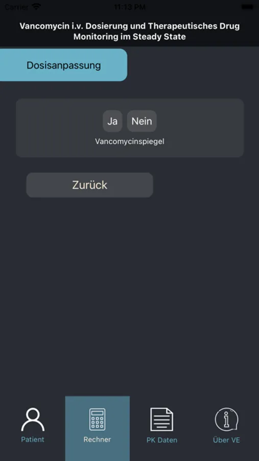 Berechnen Sie neue Vancomycin-Dosierungen oder passen Sie bestehende Dosierungen an. Sie erhalten Dosisberechnungen unter Berücksichtigung der AUC für die intermittierende und die kontinuierliche Applikation. Entwickelt für die Ausbildung von medizinischem Fachpersonal zur Berechnung bei erwachsenen Patienten ohne Nierenersatztherapie um Einflüsse der Vancomycin-Dosierung abzuschätzen und pharmakokinetische Formeln zu verstehen.