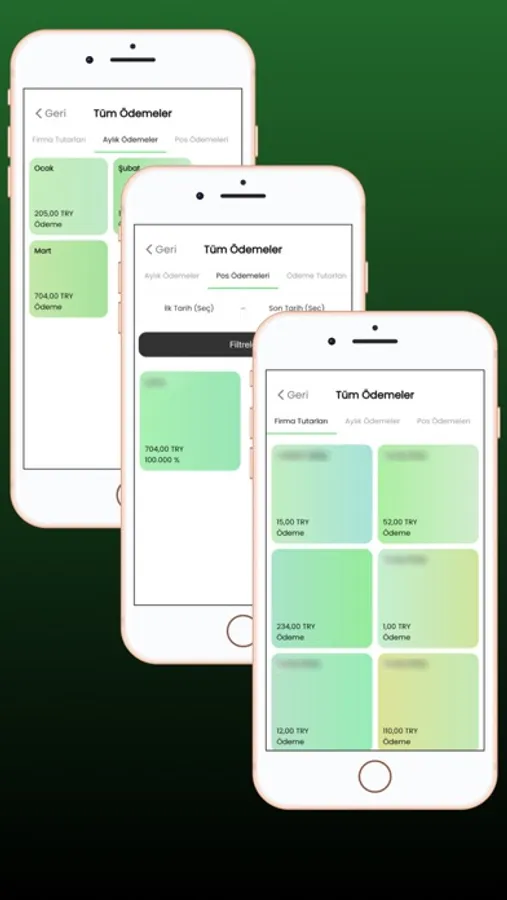 Firmalarınıza göre ödemeler ,Aylık toplam ödemeler, Pos Ödemeleri ,Ödeme Tutarları, Günlük Toplam Ödemeler ,Taksitli Ödemelerinize erişebilir, bütün ödeme bilgilerinizi kontrol edebilirsiniz.