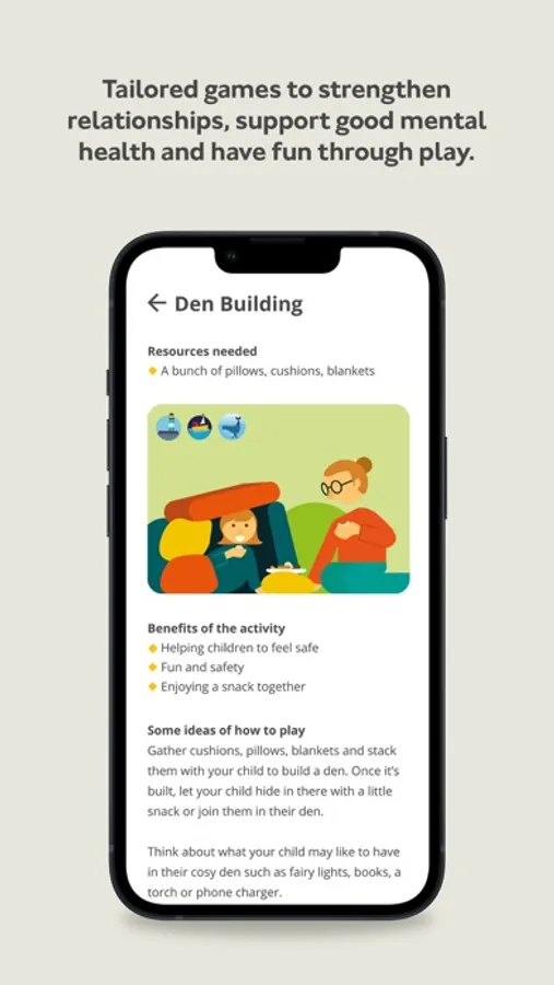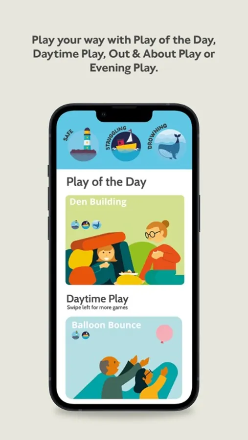 - Play based games and activities categorised in to Daytime Play, Out & About and Evening Play