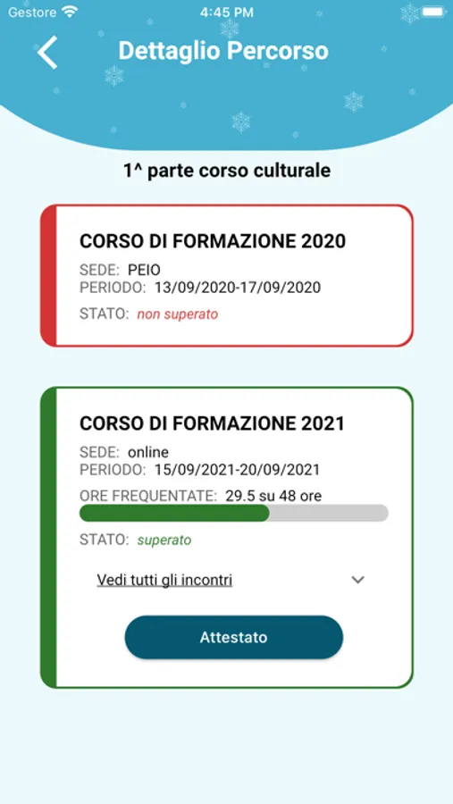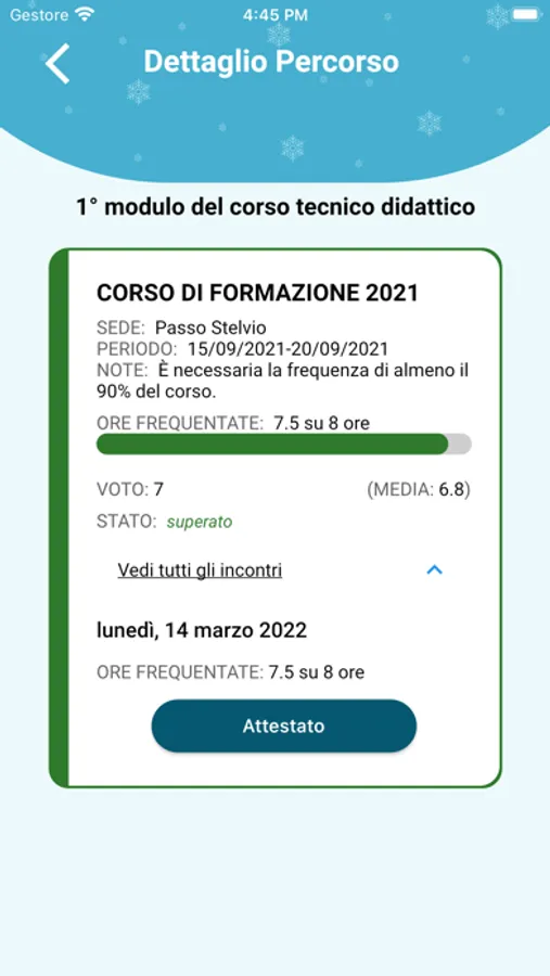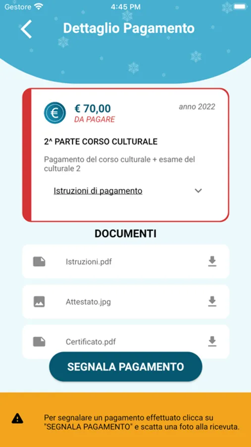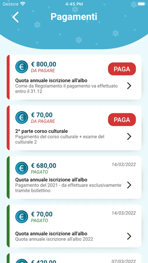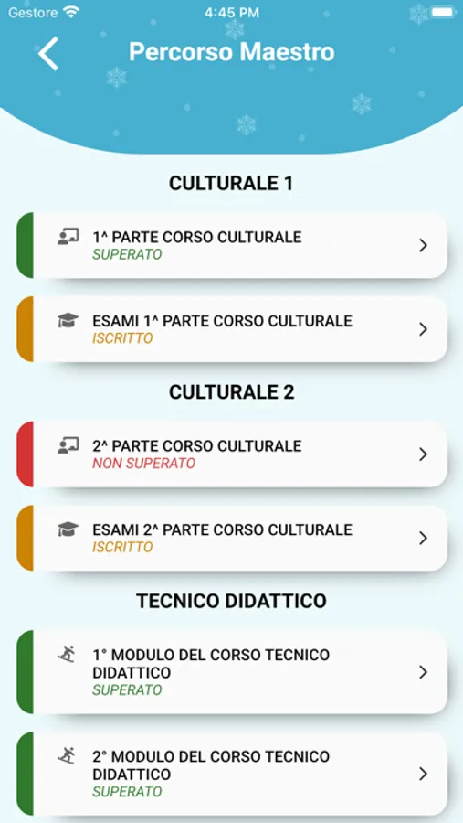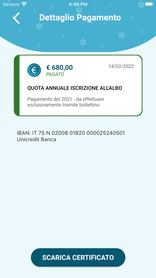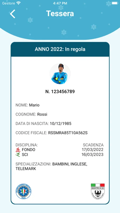 Il maestro, dall'app, ha la possibilità di consultare la propria tessera, e segnalare al Collegio Maestri di Sci Trentino il pagamento della quota annuale.