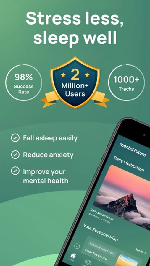 Transform your mental health with our all-in-one app. Say goodbye to anxiety and depression and hello to a calm and positive state of mind. With personalized plans to reduce panic, improve sleep, conquer procrastination, manage ADHD, overcome a breakup, and more, you'll see real results in no time. Download now and start your journey to a happier you.