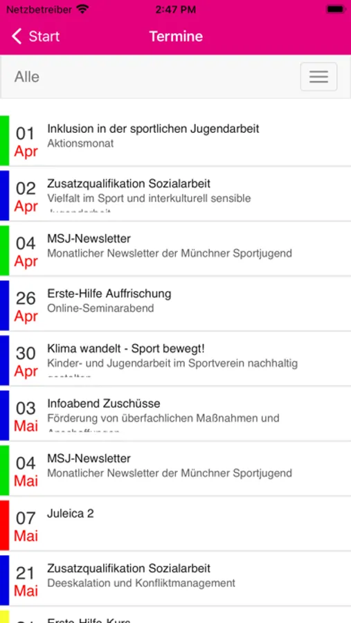• Alle MSJ-Termine (u.a. Bildung) als Kalenderfunktion