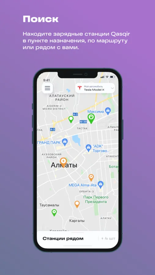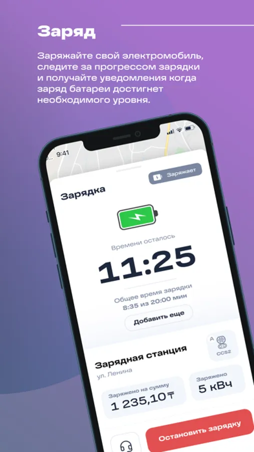 Мобильное приложение для сети зарядных станций с простой регистрацией. Доступные зарядки на карте и встроенный навигатор. Доступные языки: Казахский и Русский. Статус зарядной сессии в режиме он-лаин. Оплата по факту потребления.