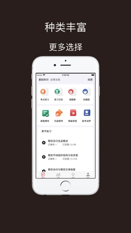 90%期货考试精华考点,每一道试题都有答案解析,为考试的提供了充分的复习准备,可随时随地学习练习让期货考生轻松备考高效学习。