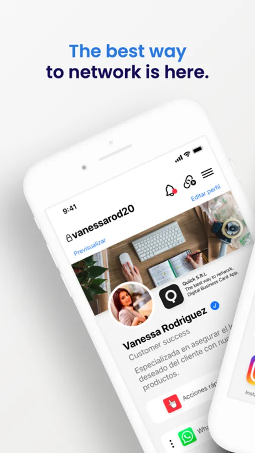 Bienvenidos a Quiick —— Connecting like a Pro. Haz crecer tu red de contactos construyendo con QUIICK, un perfil digital que podrás compartir usando nuestras tarjetas NFC con QR disponible o a través de tu dispositivo móvil, donde podrás agrupar tu información de contacto, redes sociales, archivos, videos y muchas informaciones más.