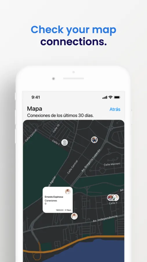 - Observa en un mapa, los lugares donde has conectado con otros y nunca olvides un contacto.