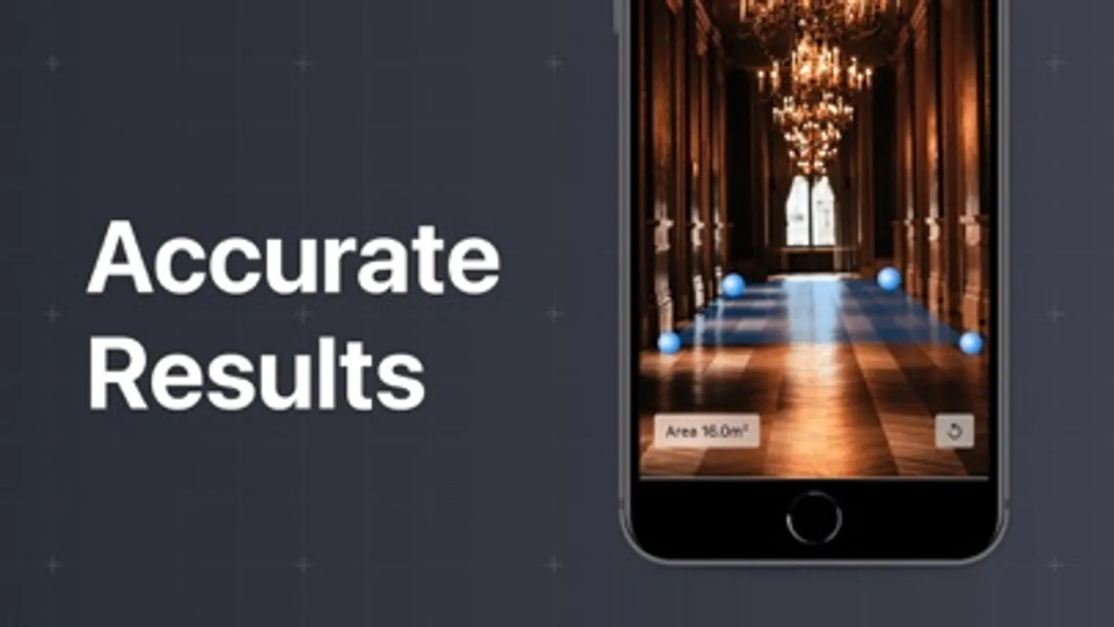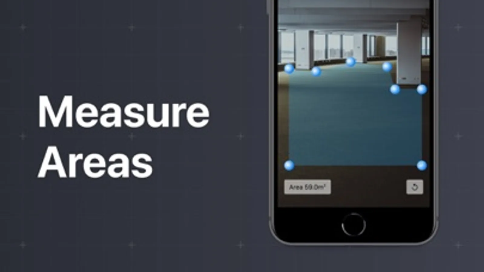 The area measurement app allows you to measure plain areas of small and medium size with very high accuracy. Just open camera and tap the screen to set first 3 points of the area and the app will calculate its size. The area can have as many corners as possible and it can have any form.