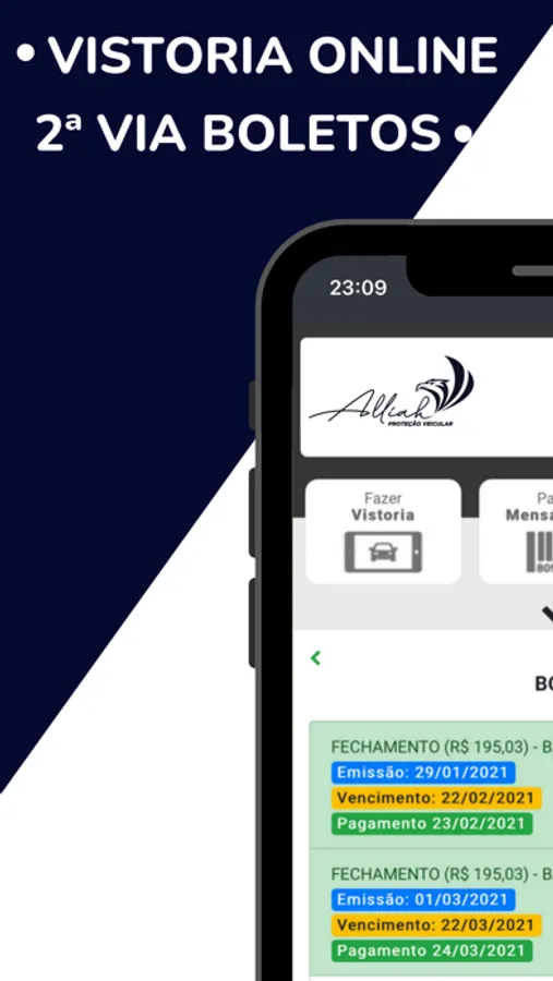 Com o novo app da Alliah, ficou mais fácil emitir boletos, visualizar veículos ativos, regulamento, benefícios e muito mais.